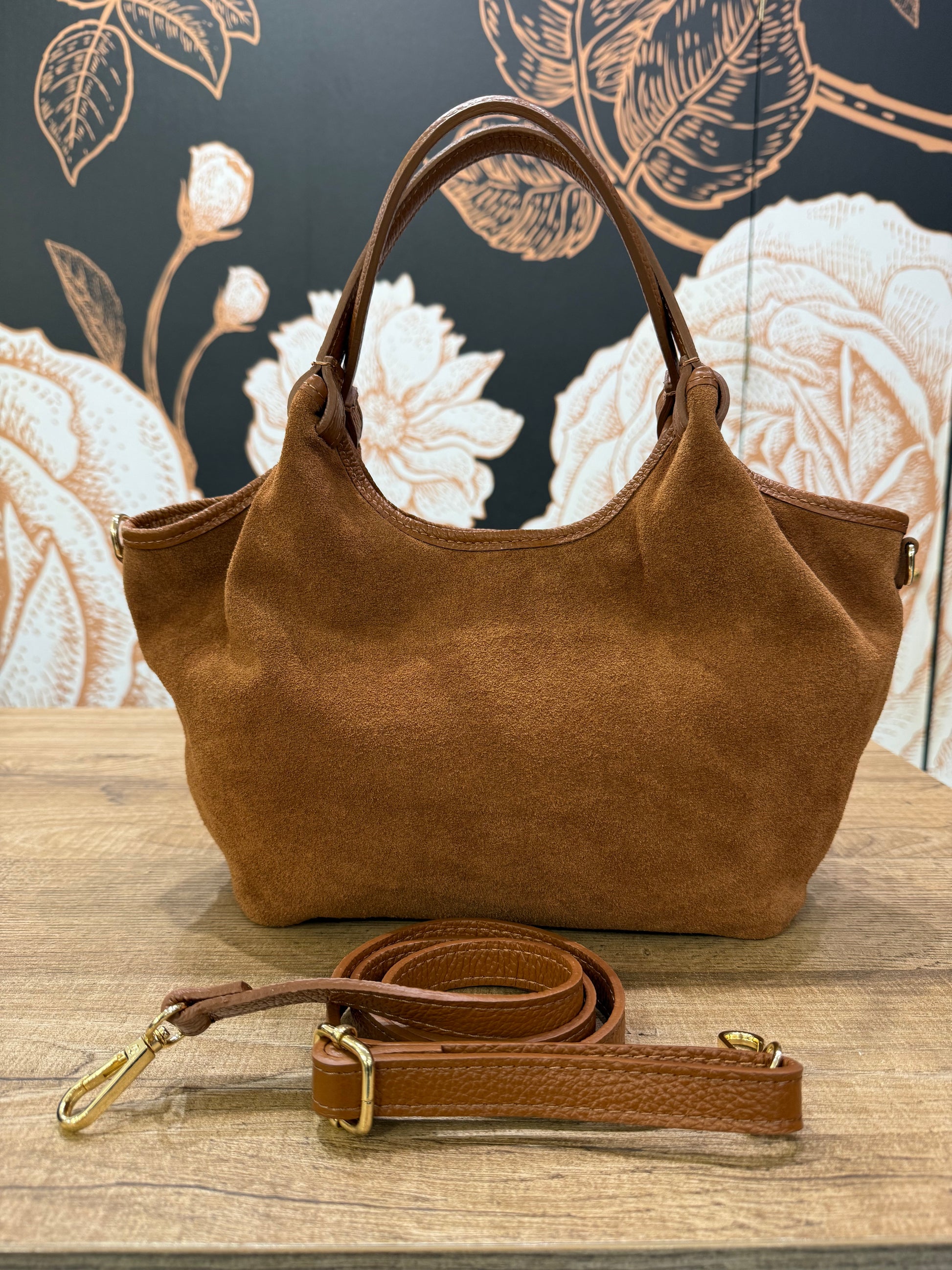 Morbida, raffinata e senza tempo: la nostra borsa Soft in suede conquista per il suo stile naturale e la sua eleganza discreta. Le linee pulite e la texture scamosciata la rendono perfetta per ogni occasione — dalla quotidianità cittadina ai weekend fuori porta.