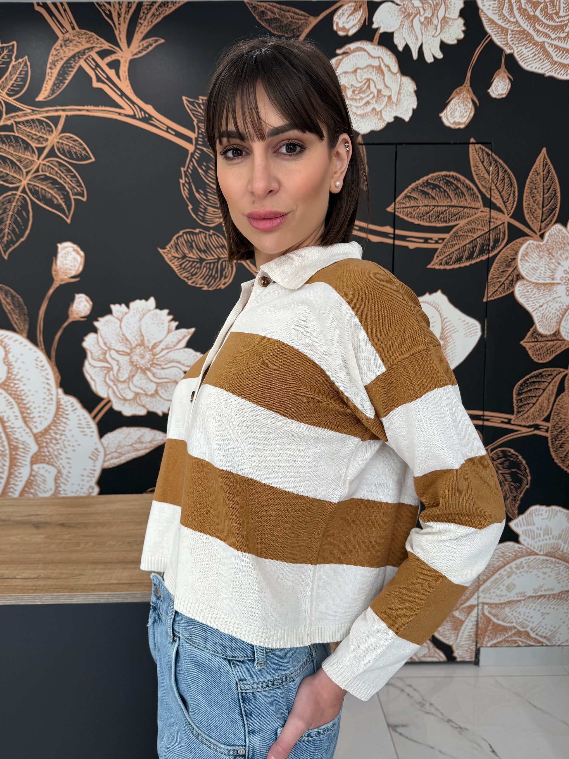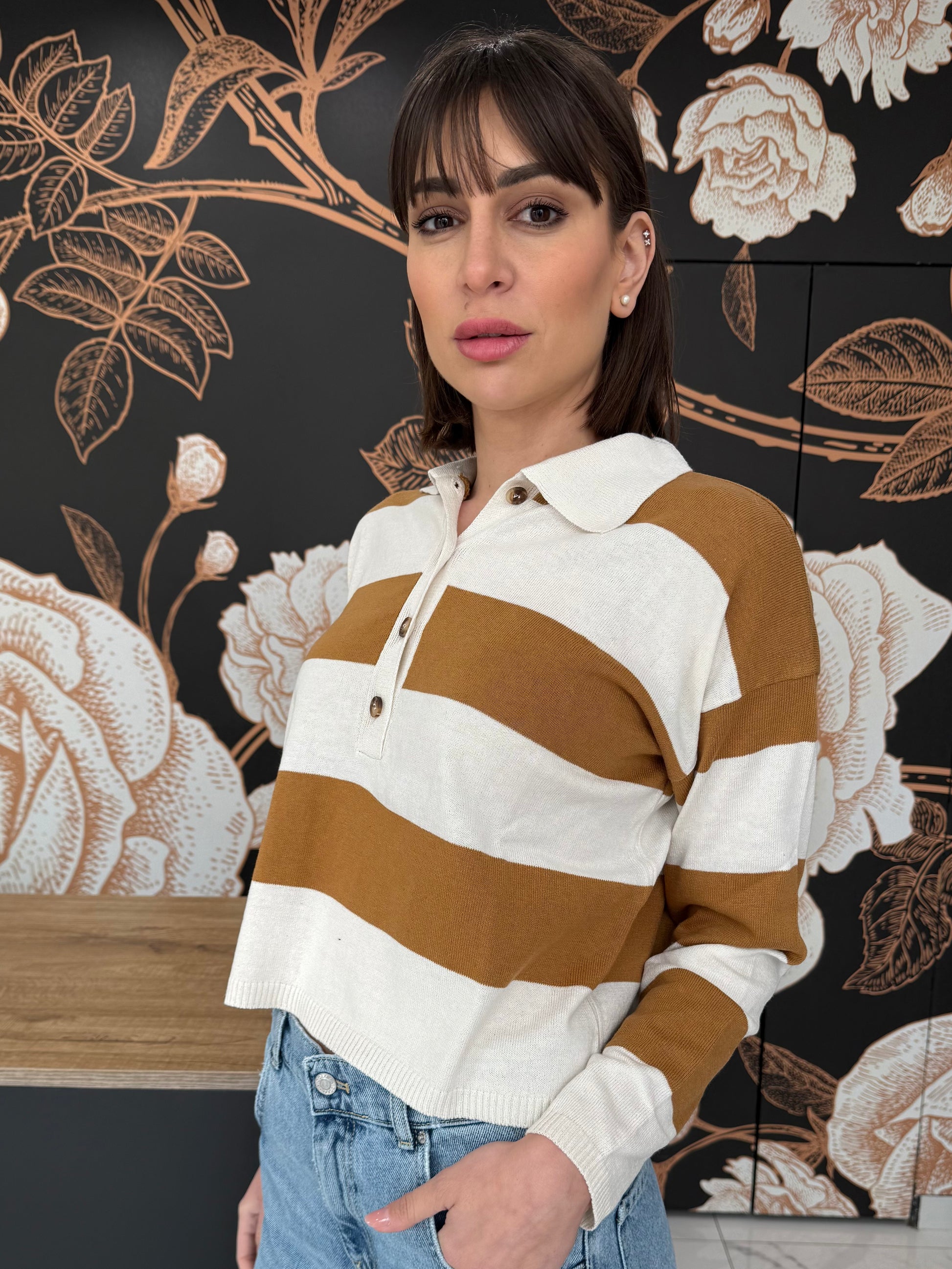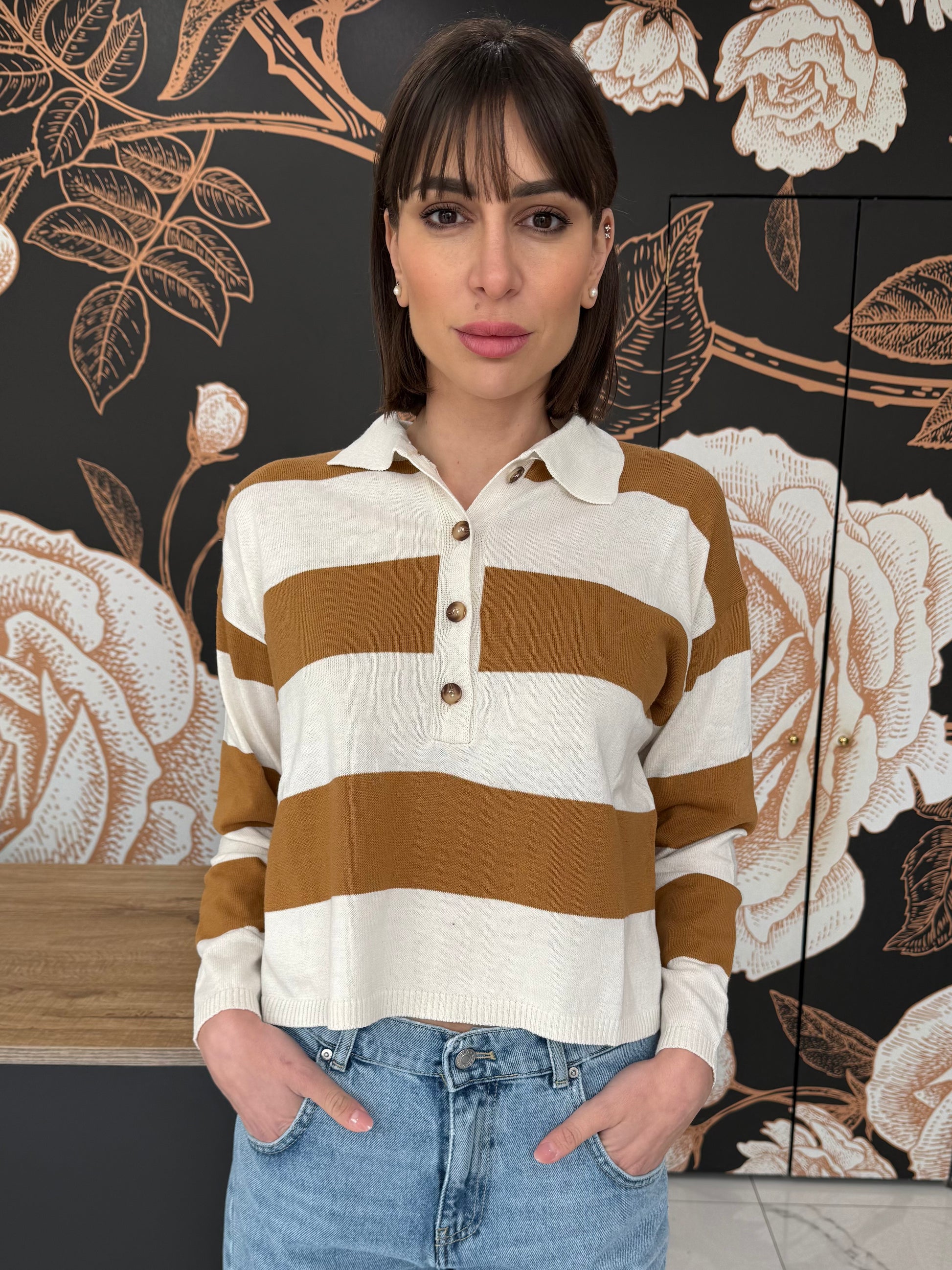 Polo a manica lunga dal design intramontabile, caratterizzata dai righe e chiusura frontale con bottoni. Realizzata per offrire comfort e stile in ogni occasione, è perfetta sia per un look casual curato che per un outfit più raffinato. Versatile e facile da abbinare, ideale per la mezza stagione.