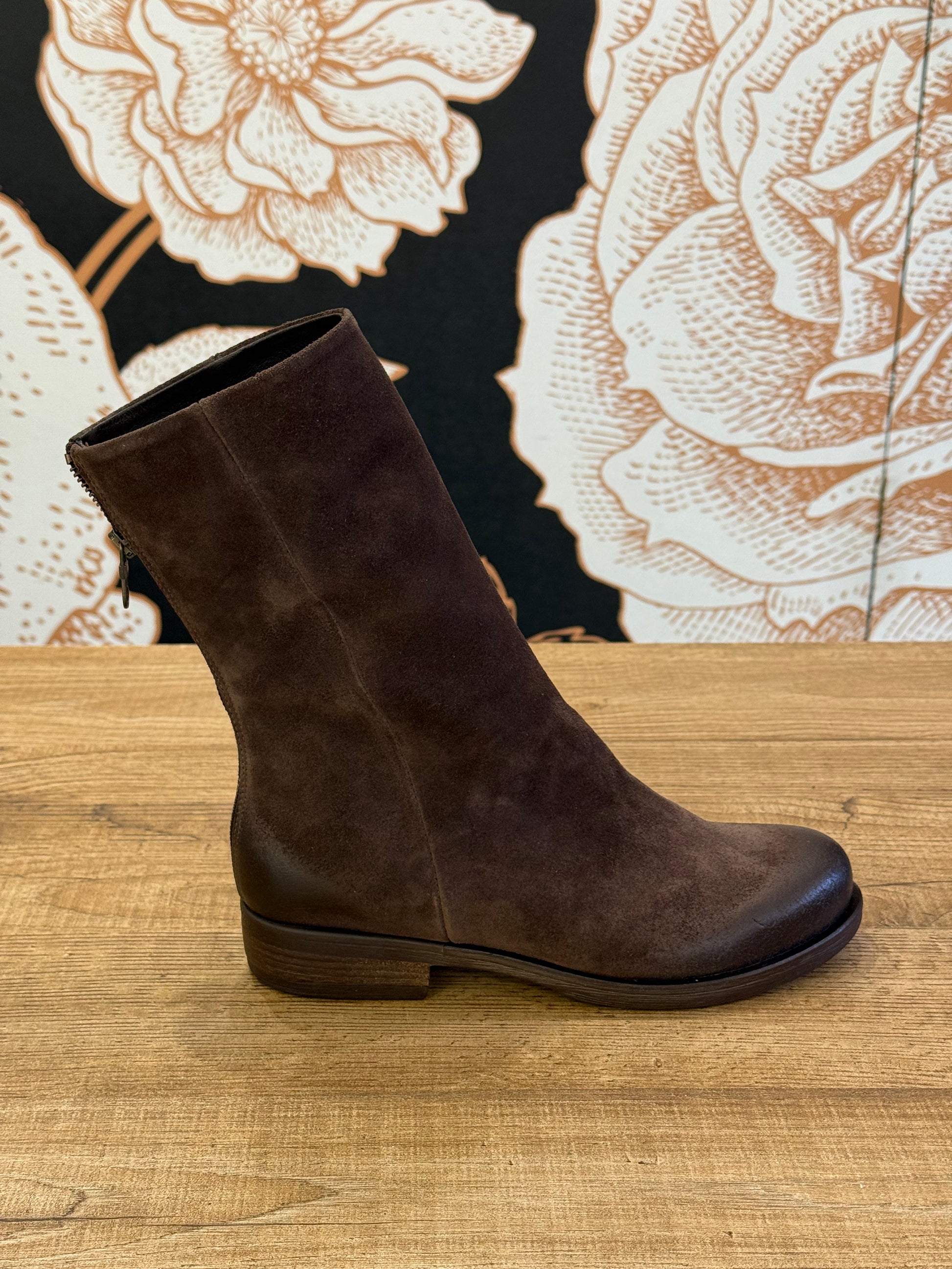 Stivaletto in camosci. Punta affusolata gamba morbido con taglio obliquo e comoda cerniera posteriore. Suola in gomma. Tacco 3cm.