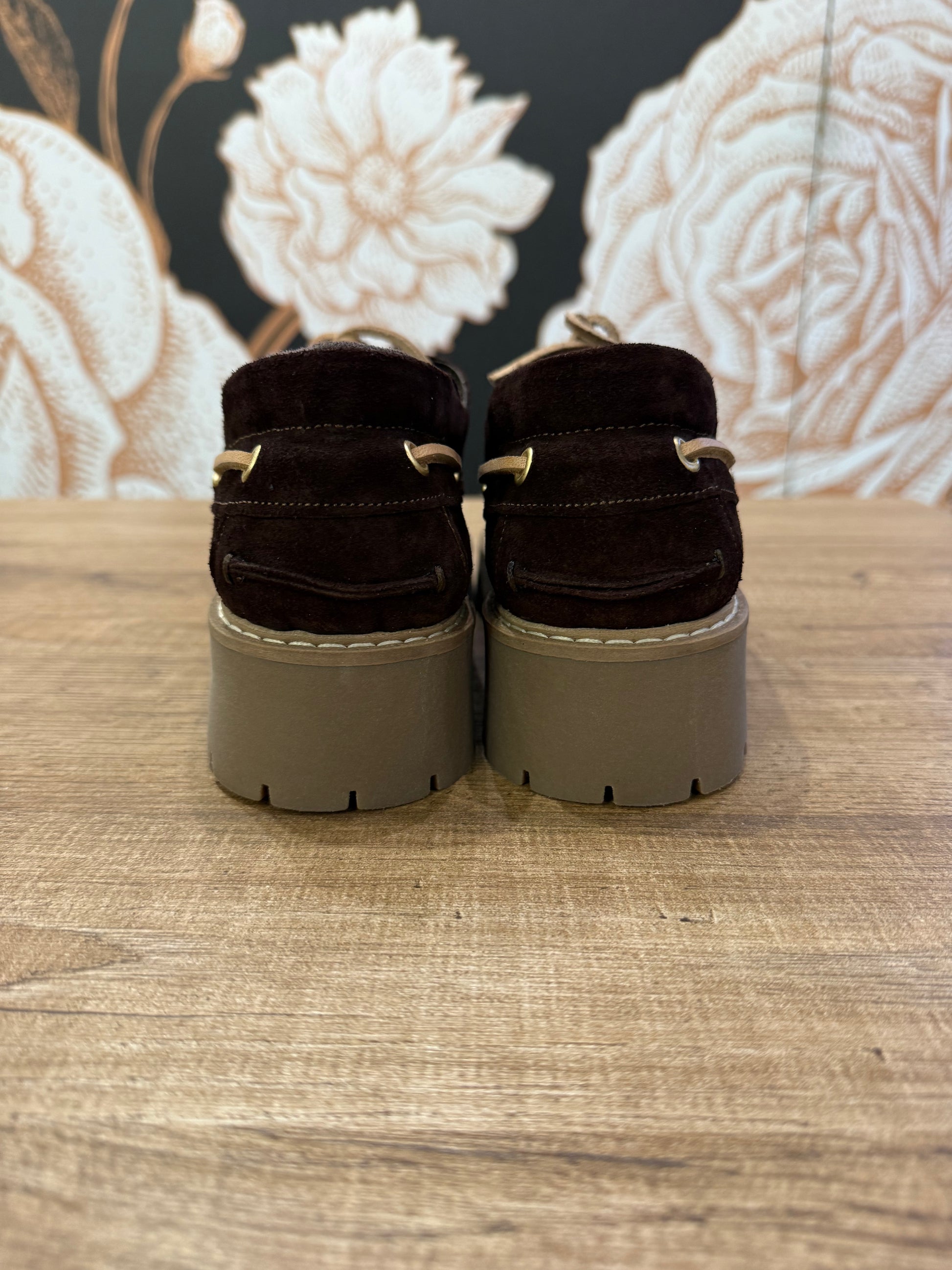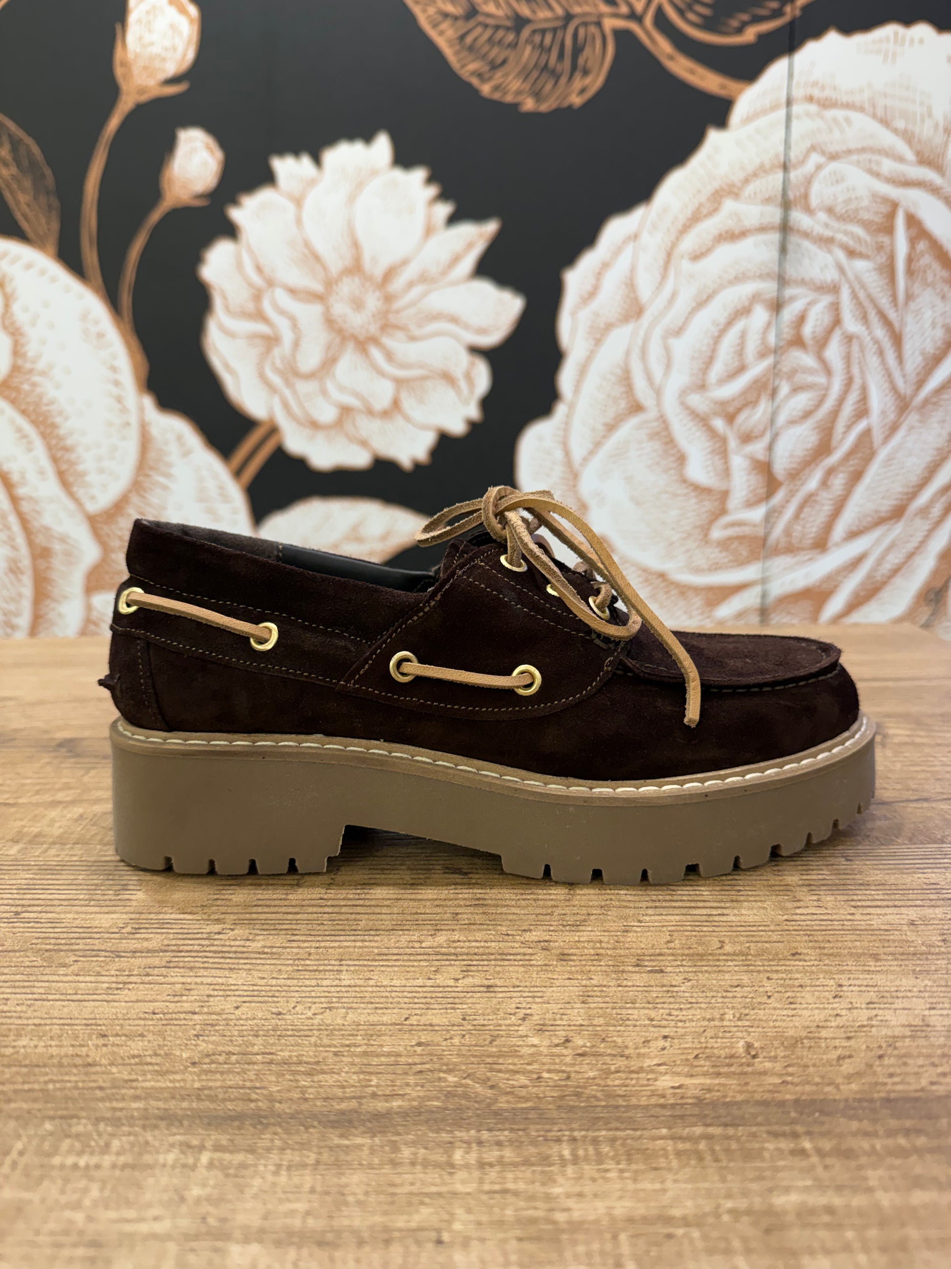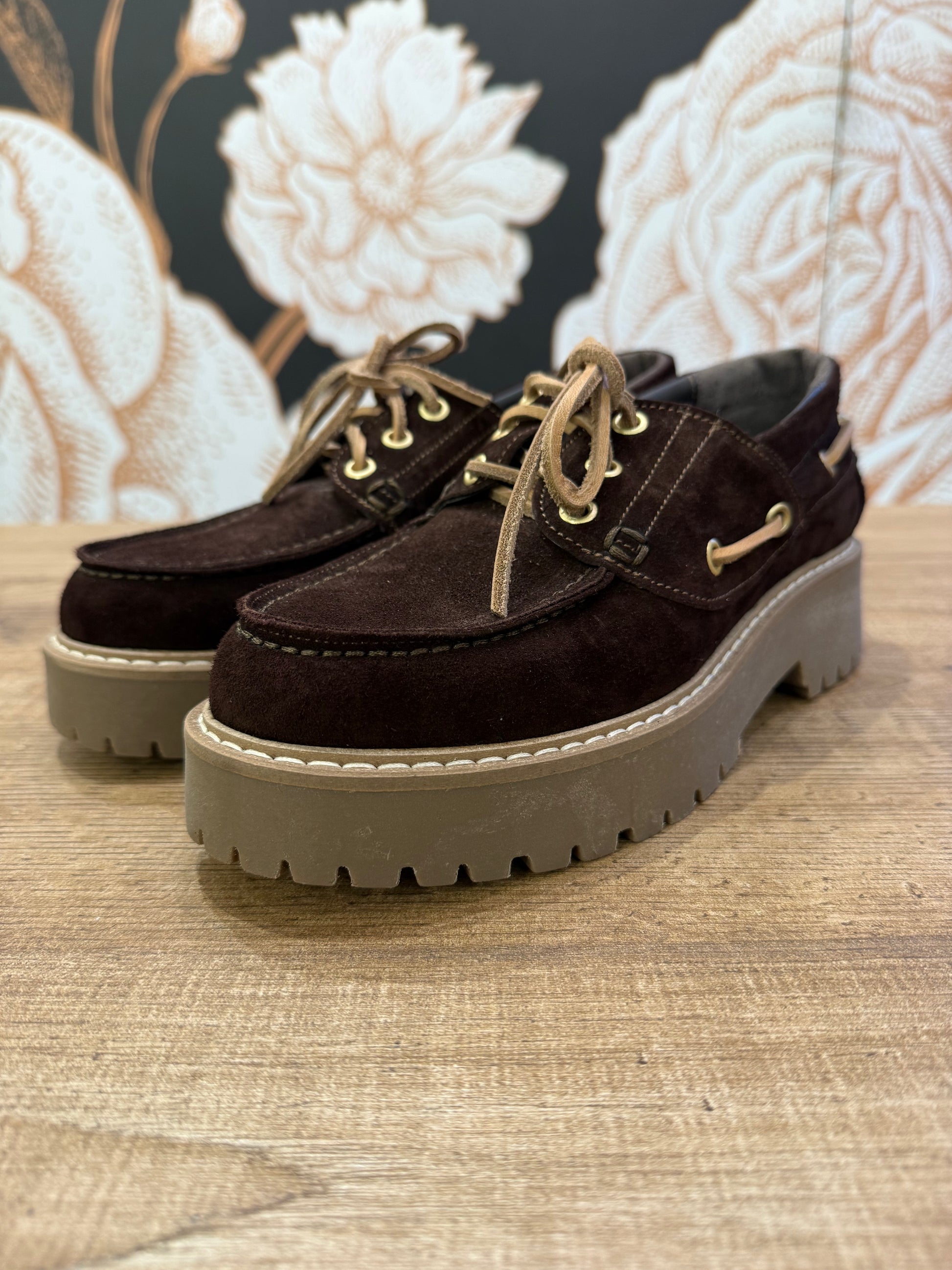 Stringata in camoscio marrone con carrarmato da 4 cm, lacci in cuoio. Realizzata con materiale pregiato e trattato per garantire morbidezza e durata nel tempo. Il carrarmato strutturato conferisce stabilità al passo, perfetto per un look casual e versatile. Ideale per chi cerca una scarpa classica di qualità, capace di adattarsi a molteplici occasioni con stile consapevole. Questo modello è un must del guardaroba femminile, non può mancare.
